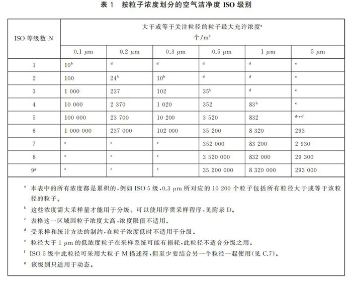 ISO 14644-1:2015“潔凈室及相關(guān)受控環(huán)境 第1部分:按粒子濃度劃分空氣潔凈度等級”中將