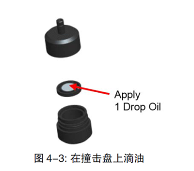 3、 在撞擊盤上滴一滴油,不要使其溢出。
